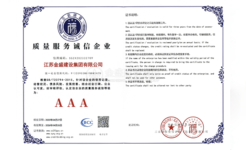 • 2007年江蘇省質量信得過安全穩定施工企業